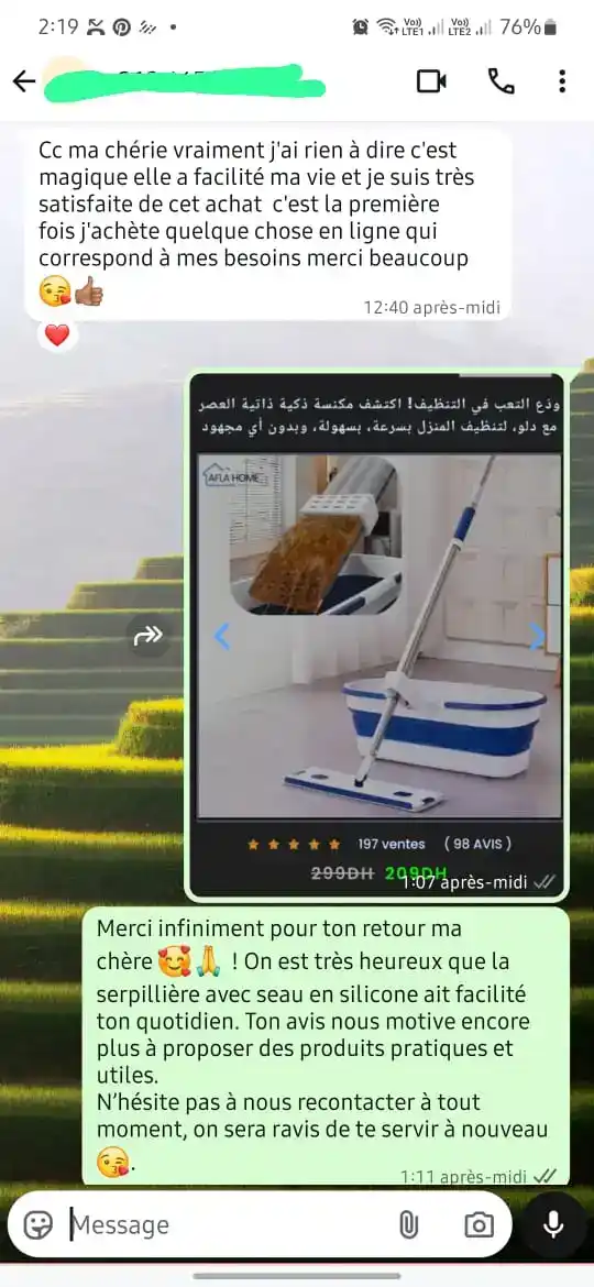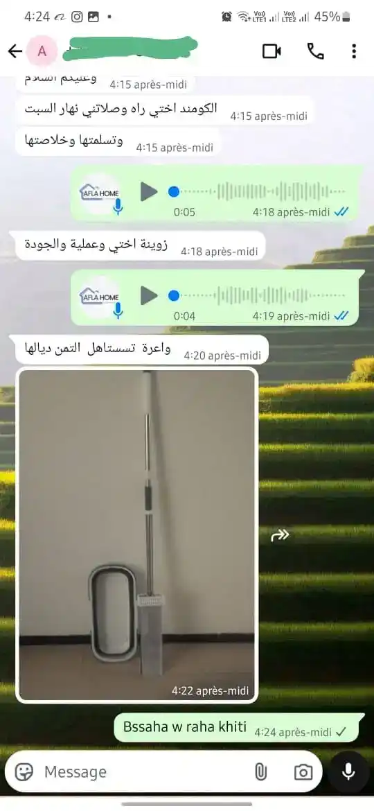 توصلت بيها البارح و جربتها اليوم، نتيجتها زوينة كتخلي الأرض نقية ، كنت كنشك شوية ولكن دابا مرتاحة فيها. شكرا