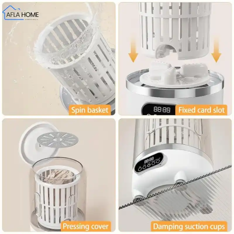 توفر هذه الغسالة المحمولة 4 أوضاع للتنظيف، مع أزرار توقيت لمدة 5 دقائق لكل وضع