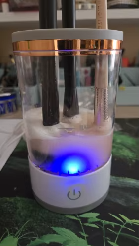 طريقة الإستخدام : سهلة و بسيطة، فقط أضيفي القليل من الماء وسائل التنظيف، ضعي فرش المكياج في الفتحات المخصصة حسب الحجم واضغطي على زر التشغيل