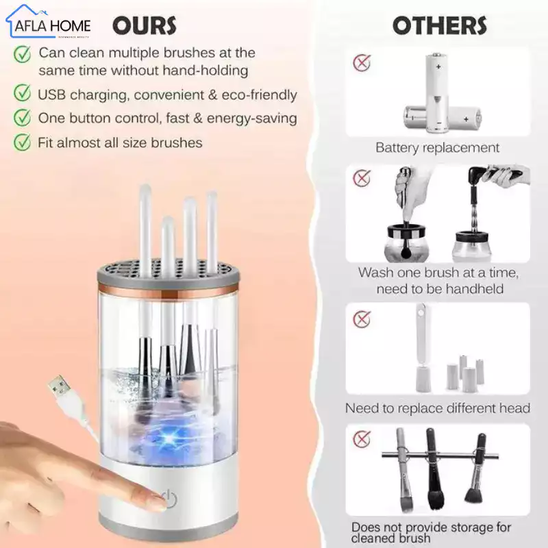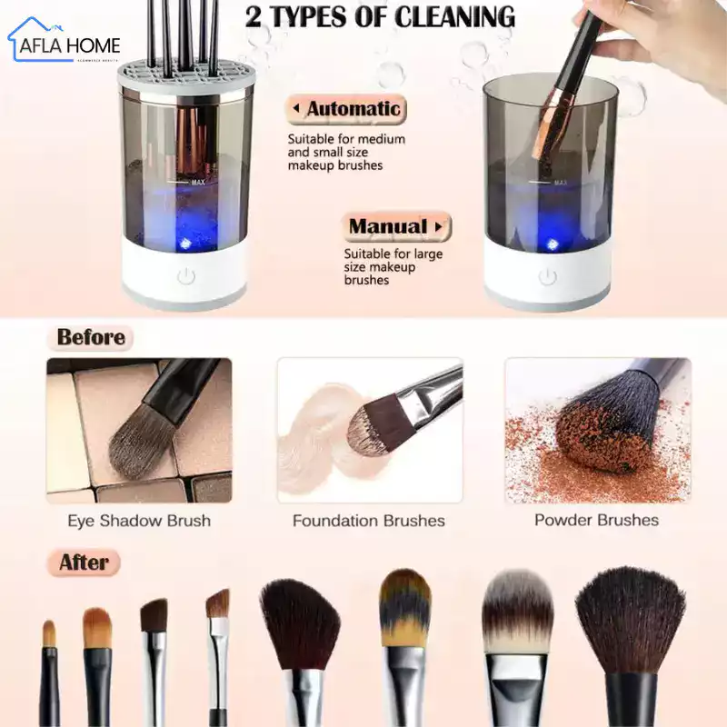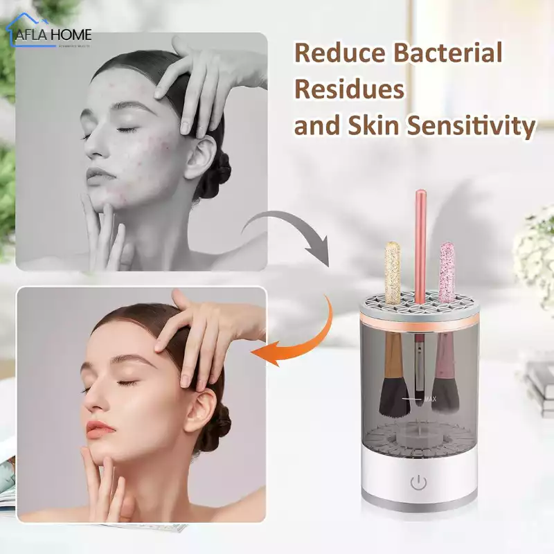 هل تعانين من تنظيف فرش المكياج؟ تتراكم عليها الأوساخ والبكتيريا، وتأخذ وقتًا طويلًا في التنظيف والتجفيف، مما يسبب تهيّجًا لبشرتك وظهور الحبوب؟ والأسوأ من ذلك… تبقى الفُرش مبللة وغير صالحة للاستعمال في اللحظة التي تحتاجينها فيها؟ نقدم لكِ الحل المثالي: جهاز تنظيف فرش المكياج الأوتوماتيكي 3 في 1 هو الحل الذكي والبسيط. ينظف فرشك بعمق، يجففها بسرعة، ويمنحك مكانًا مرتبًا لتخزينها. كل ذلك في دقائق، وبدون تعب… لتحافظي على صحة بشرتك، وتكوني دائمًا مستعدة بإطلالة مثالية
