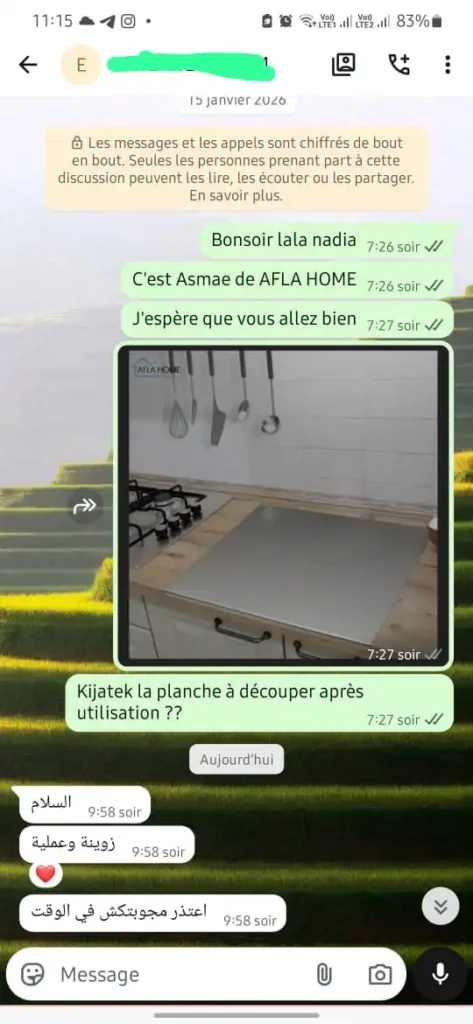 Assistance via WhatsApp ou téléphone.
