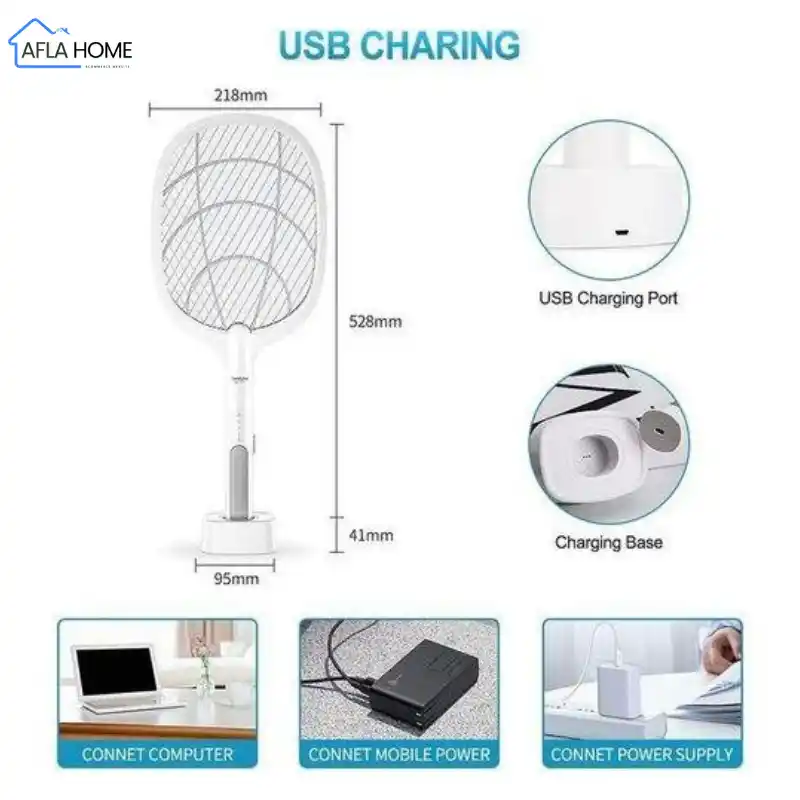 سهل الاستعمال: اشحنه عبر الكابل، شغّله بلمسة واحدة، واستعمله يدويًا أو ضعه على القاعدة ليجذب ويقضي على الحشرات تلقائيًا بفضل شبكته الكهربائية القوية